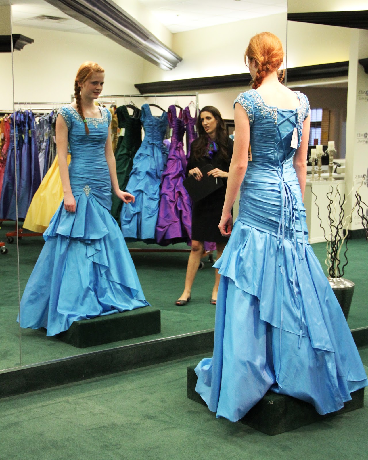 Every once in a while, my sister who lives in Idaho brings her cute (redheaded) daughter down to our area to do clothes shopping, usually school shopping. They invite my other sister and me along and we have a great time playing dress up with our niece. That cute little redhead is growing up now and is in the market for prom dresses, which takes our little shopping trips to a whole new level!
